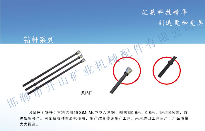 風(fēng)鉆桿屬于鑿巖釬具系列,又名釬桿,材料選用55SiNOMO中空六角鋼,規(guī)格有0.5米、0.8米,l米至6米等,常用規(guī)格有B19/B22/B25等。可配備各種鑿巖機使用,生產(chǎn)改變傳統(tǒng)生產(chǎn)工藝,采用進口工藝生產(chǎn),產(chǎn)品質(zhì)量大大提高。 風(fēng)鉆桿規(guī)格: